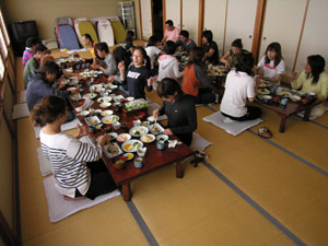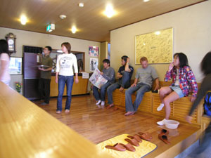 | 朝食後の一服、愛煙家のたまり場ですね。たちばなの玄関先 |
