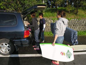 あーさて、楽しかった合宿も最終日、たちばなをチエックアウトの日、最後の波乗りとスクールがまだ残ってます。帰りの朝です。 |
