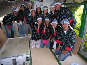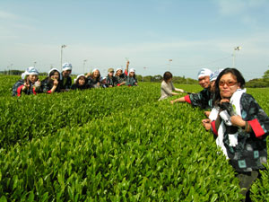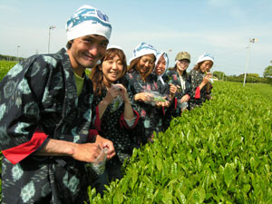 | みんな様になってるじゃん!今年(2007年)は松井君んが茶摘みを本業でしているのでこのシーズンは忙しくて参加出来ないそうです。 |